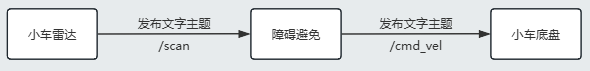 内置节点 obstacle_avoidance 订阅 scan ( sensor_msgs/msg/LaserScan ),并发布 cmd_vel ( geometry_msgs/Twist )控制底盘。