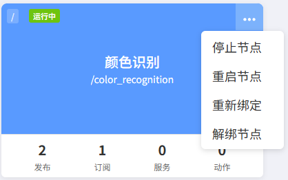 卡片信息中显示节点订阅主题、发布主题、服务和动作通信的数量。