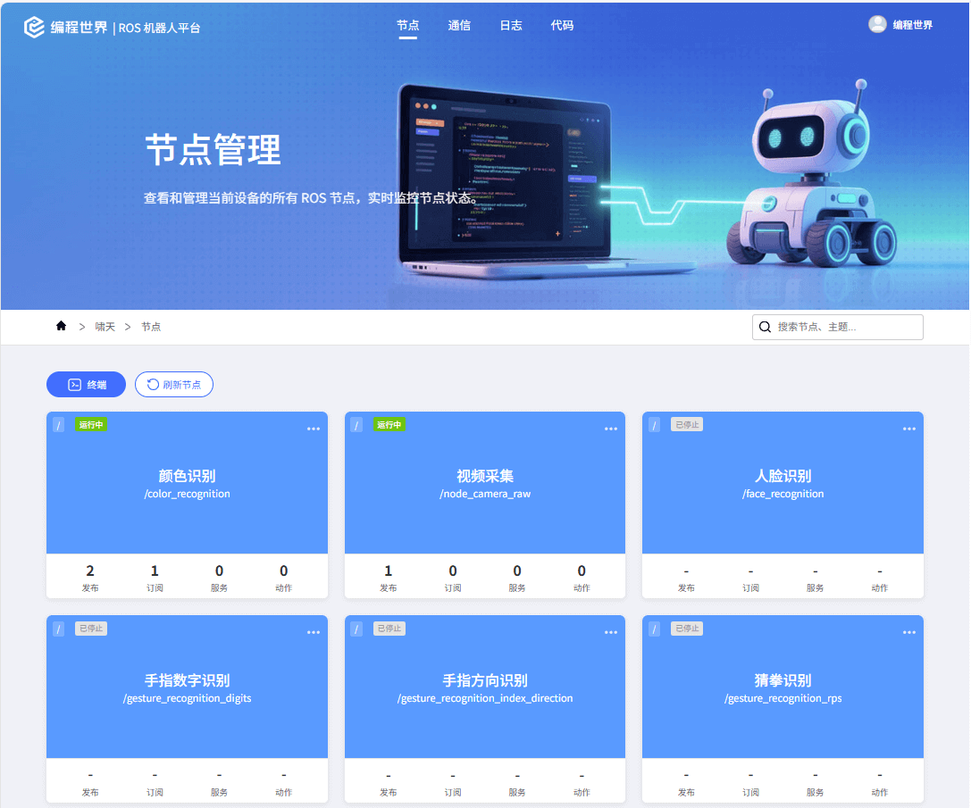 ROS机器人连接成功后,进入节点管理页签。