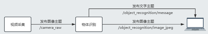 内置节点 object_recognition 订阅 /camera_raw,识别并可视化后发布图像与消息结果。